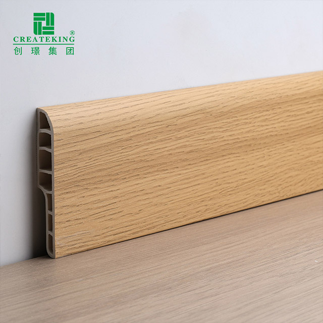Papan skirting pensil PVC 70*12mm diperbuat daripada substrat PVC berketumpatan tinggi dan teknologi pelapis venir bijirin kayu. Ia mempunyai rupa bulat dan tekstur semula jadi. Bahagian atas menggunakan reka bentuk arka 'pensel', yang kalis habuk dan cantik. Bahagian dalamannya menggunakan struktur berbilang rongga berongga, yang ringan dan tahan lama. Bahagian belakang boleh menyembunyikan wayar untuk meningkatkan kekemasan ruang.
